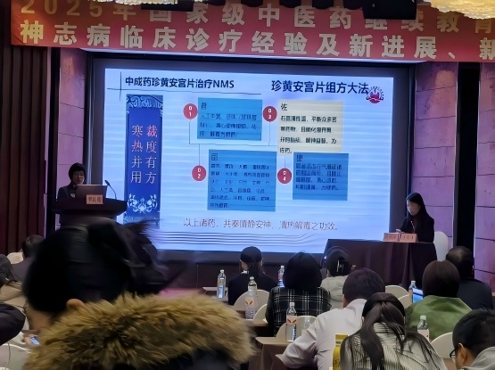 会上,范吉平教授率先以《经方剂量研究和应用》作报告,徐建教授、陈俊逾教授等随后分别就失眠障碍、神志病预警干预分享成果;贾妮教授、杨旭红教授、都弘教授等也依次带来专题报告。其中,深圳大学附属华南医院罗恩丽教授在其分享的研究成果中提及的“珍黄安宫片临床应用研究”引发关注。珍黄安宫片源自经典名方 “安宫牛黄丸”化裁,为中华中医药学会多项临床诊疗指南推荐用药,在镇静安神、清热解毒方面优势显著。罗教授的报告系统展示了该产品在精神分裂症、抑郁症及睡眠障碍等方面的临床应用数据和价值,认为其为神志病的综合治疗提供了新的选择。
