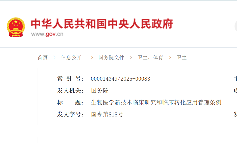 生物医学新技术临床研究和临床转化应用管理条例